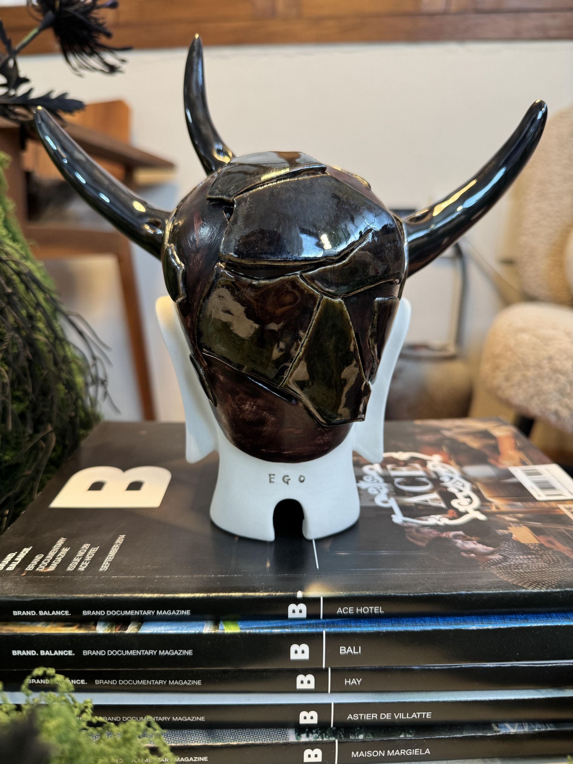 이 작품은 서울디자인페스티벌에서 선보인 {부다 같은 것} 시리즈 3번과 5번 EGO에 이은 17번 EGO입니다. 뿔은 나의 정체성을 의미합니다. 그것은 다른 사람에게 없을 수 있고 잘려 나갔을 수 있고 내 안을 부수고 나와 아무렇게나 뻗기도 합니다. 이것은 나의 노력이나 선택의 문제가 아닌 경우도 많습니다. 내가 원하던 게 아닐 수도 있습니다. 그런데도 마치 그 사람의 잘못인 것처럼 꾸짖고 혐오하는 세상에 태어났습니다. 남들의 잣대가 아닌 나의 기준을 받아들이는 것이 당연한 세상이 되길 바라는 마음을 담아 작업했습니다.