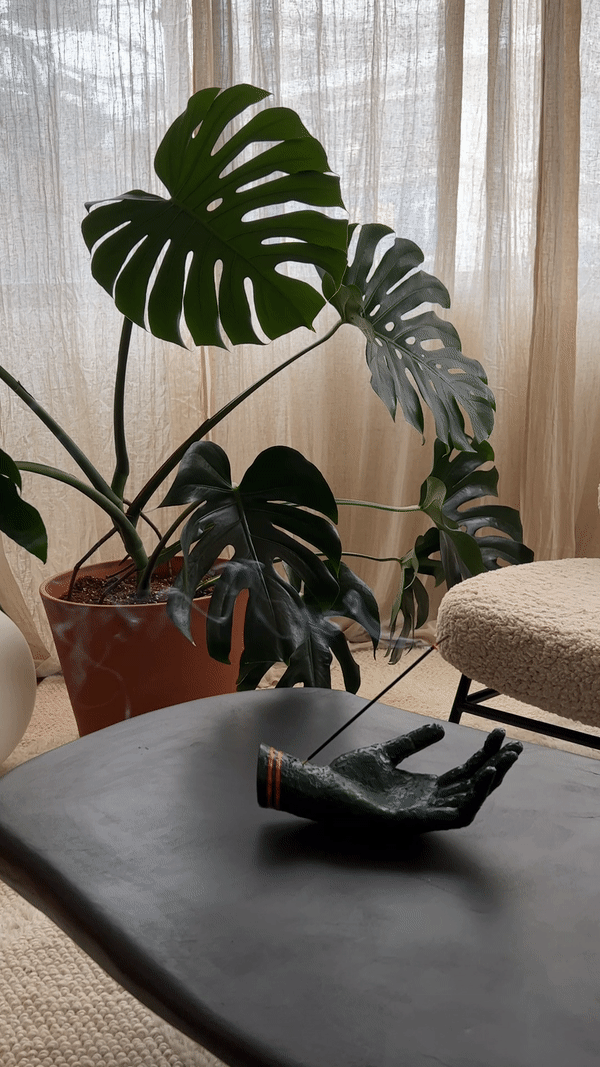 - 인센스 스틱을 꽂을 때에는 손잡이 부분이 1cm 정도 나오도록 잘라서 사용해 주시면 재가 손바닥 안에 떨어지게 사용하실 수 있습니다.