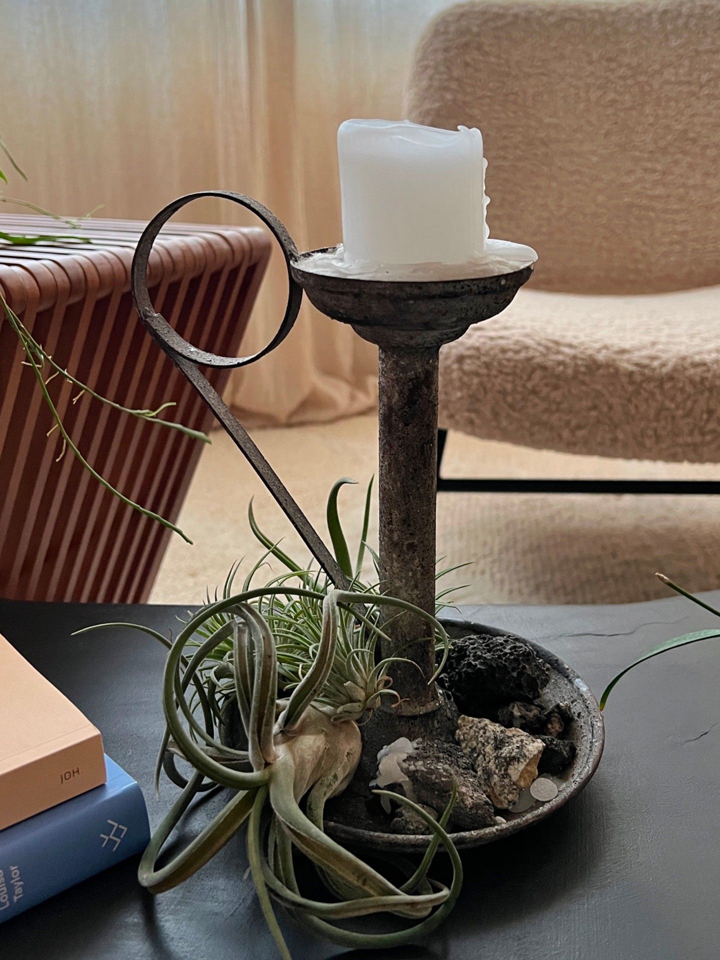 철제 소재의 캔들 홀더로 녹슨 듯한 질감의 특별한 페인트로 마감되었습니다.